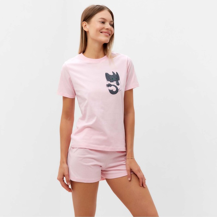 Пижама женская (футболка, шорты) Tusi, размер 48, цвет пудра — Характеристики