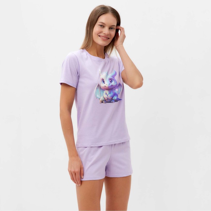 Пижама женская (футболка, шорты) Tusi, размер 48, цвет сиреневый дракон