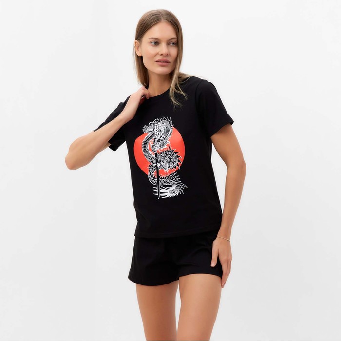 Пижама женская (футболка, шорты) Tusi, размер 52, цвет чёрный дракон