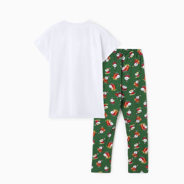 Пижама женская (футболка/брюки) "Дед мороз на мопеде", цвет белый/зелёный, размер 46 — Характеристики