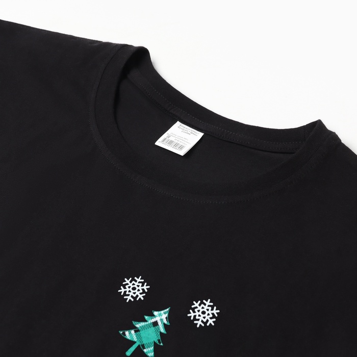Пижама женская (футболка/брюки) "Снежинки+Ёлка", цвет чёрный/зелёный, размер 46 — Характеристики