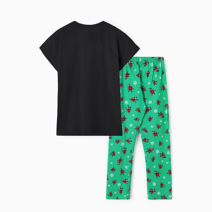Пижама женская (футболка/брюки) "Снежинки+Ёлка", цвет чёрный/зелёный, размер 46