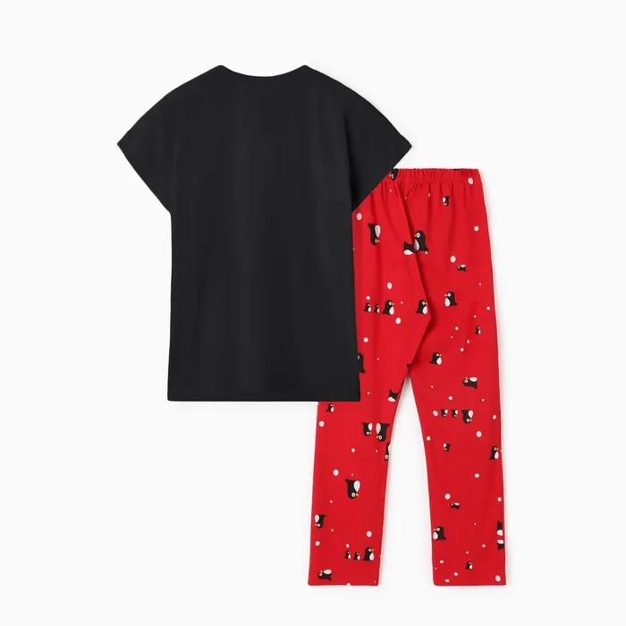Пижама женская (футболка/брюки) "Три пингвина", цвет чёрный/красный, размер 46