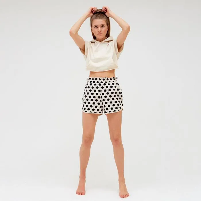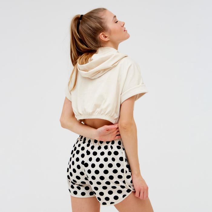 Пижама женская (худи, шорты) MINAKU: Polka-dot collection, бежевая, размер 46 — Характеристики