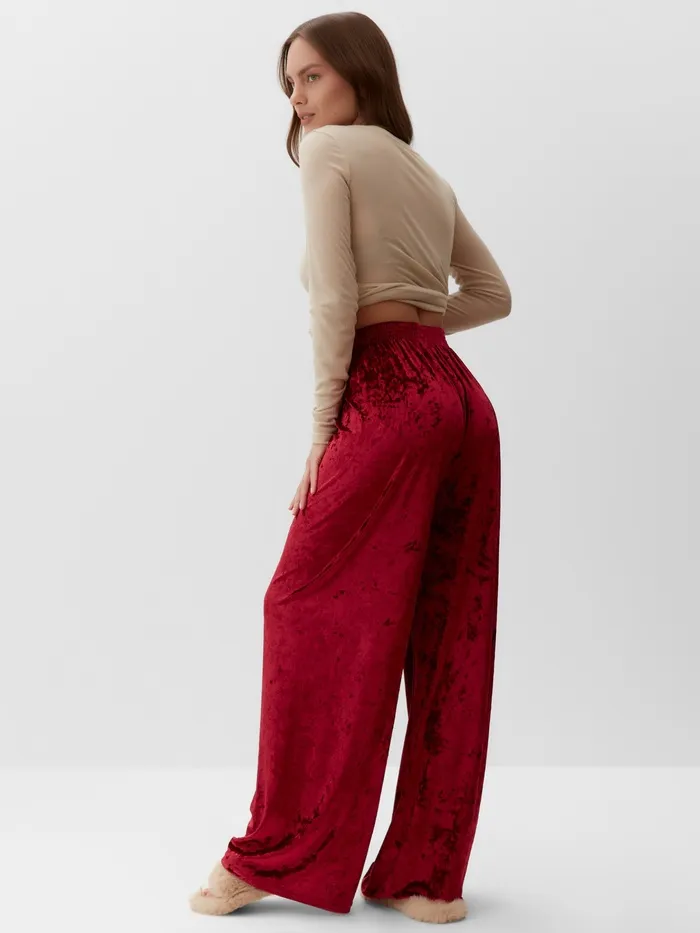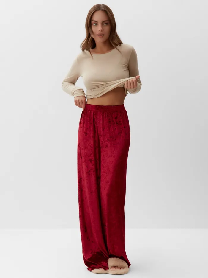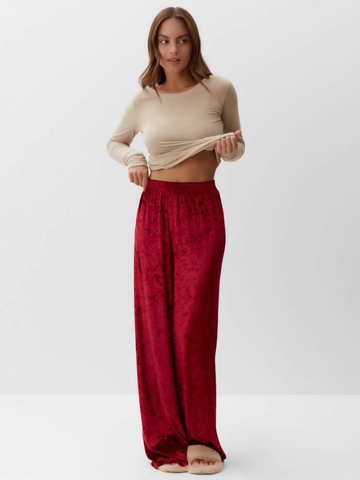 Пижама женская (лонгслив, брюки) KAFTAN «Бархат», размер 48-50, цвет бордовый, бежевый — Характеристики