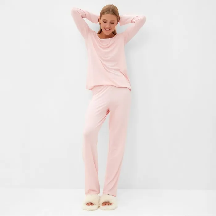 Пижама женская (лонгслив, брюки) MINAKU: Home collection, размер 46, розовая