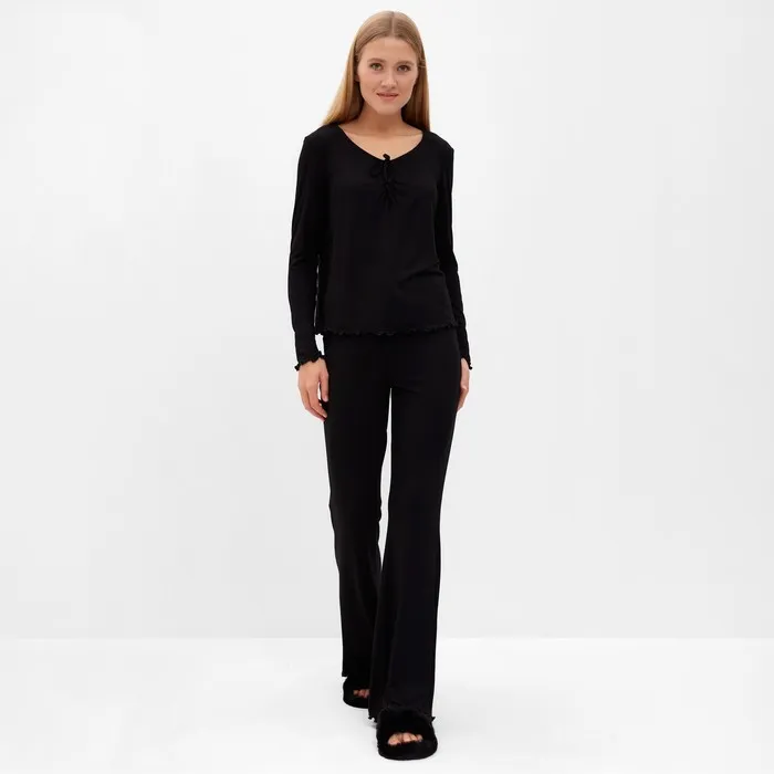 Пижама женская (лонгслив, брюки) MINAKU: Home collection, размер 48, чёрная — Характеристики