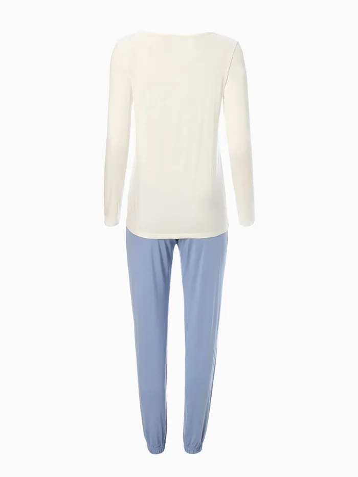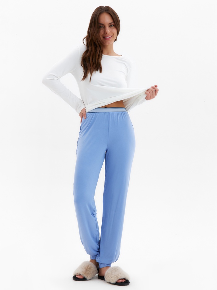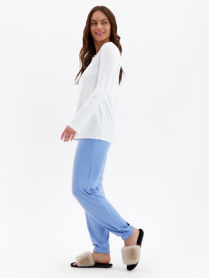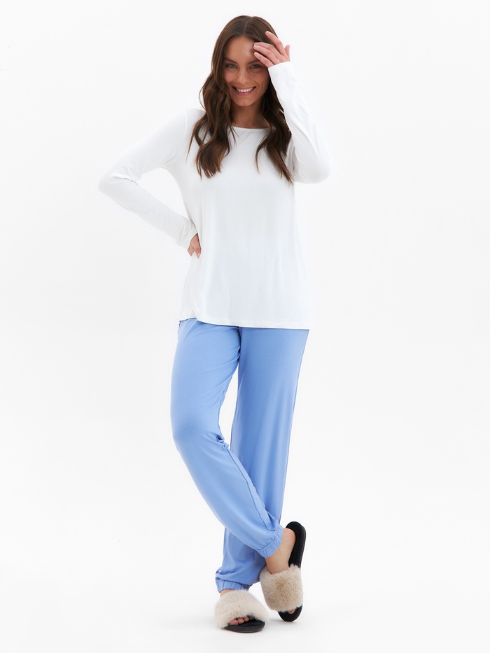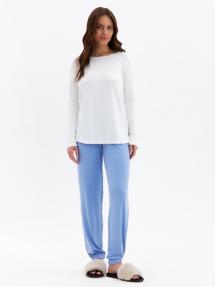 Пижама женская (лонгслив, брюки) MINAKU: Home collection, размер 48, цвет экрю, голубой — Характеристики