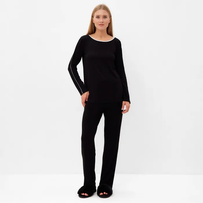 Пижама женская (лонгслив, брюки) MINAKU: Home collection, размер 58, чёрная — Характеристики
