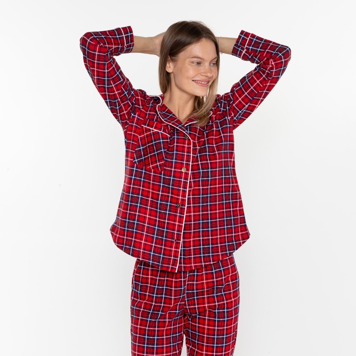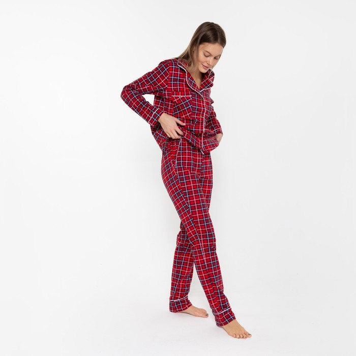 Пижама женская (лонгслив, брюки), размер 48, красный