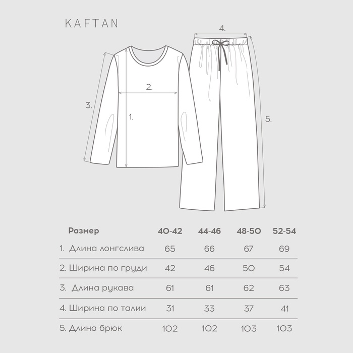 Пижама женская (лонгслив и брюки) KAFTAN "Love" размер 44-46 — Характеристики