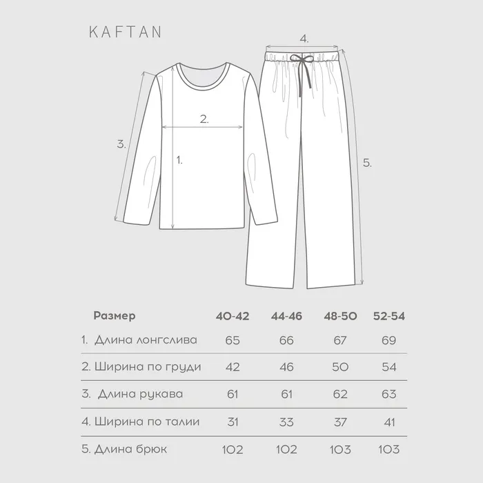 Пижама женская (лонгслив и брюки) KAFTAN "Love" размер 52-54 — Характеристики