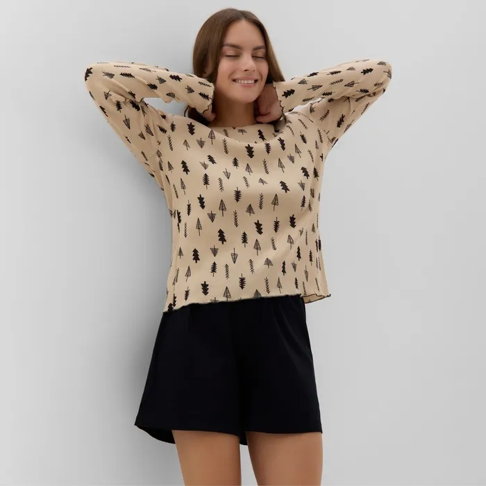 Пижама женская (лонгслив и шорты) KAFTAN "Елки" размер 48-50 — Характеристики