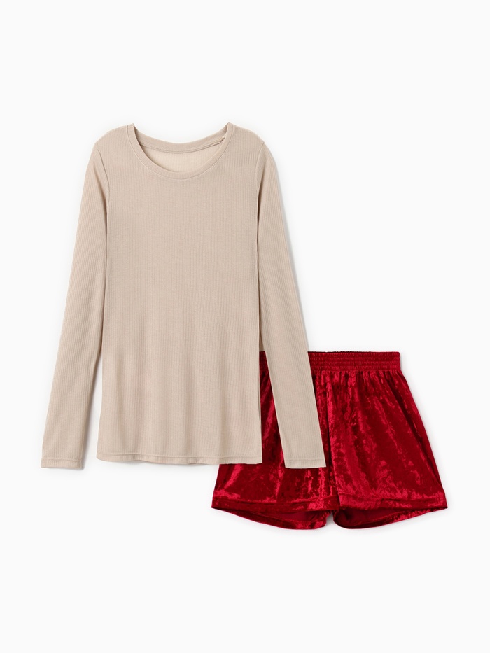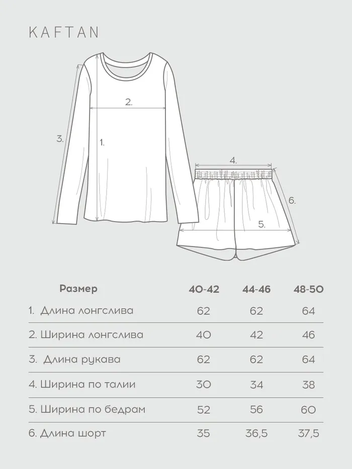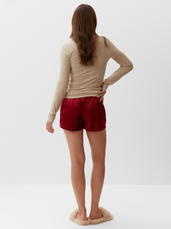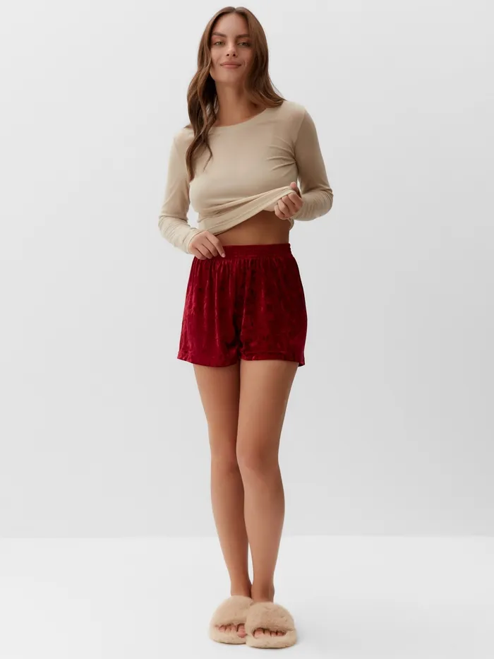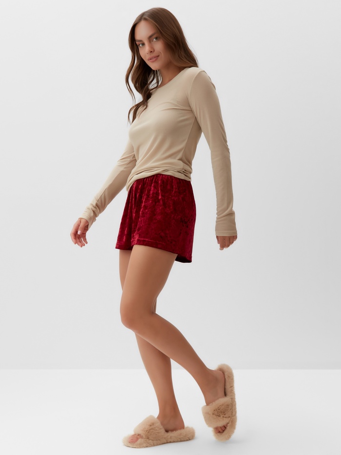 Пижама женская (лонгслив, шорты) KAFTAN «Бархат», размер 40-42, цвет бордовый, бежевый — Характеристики