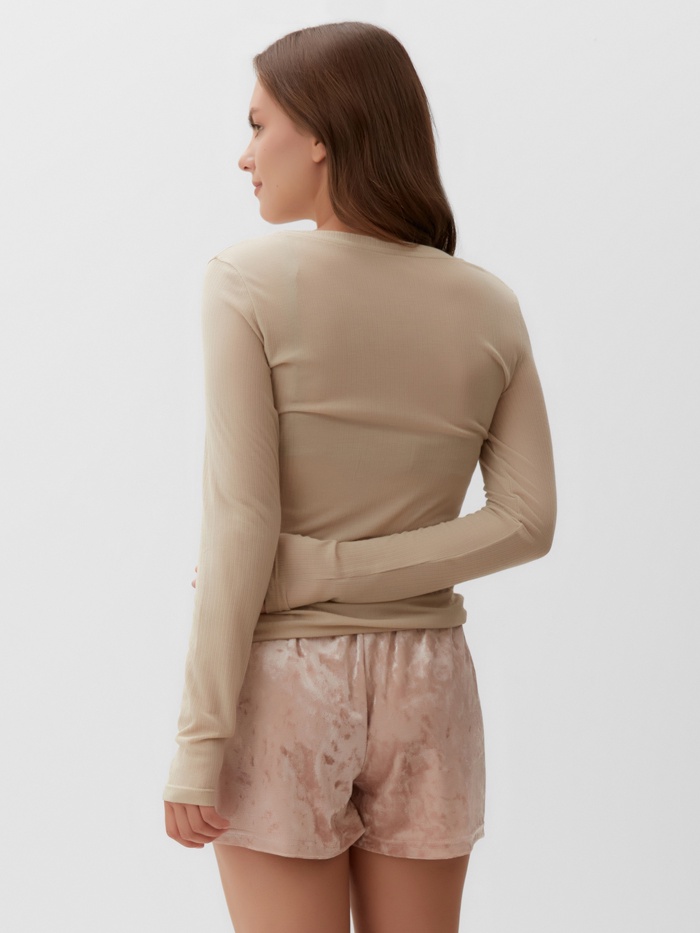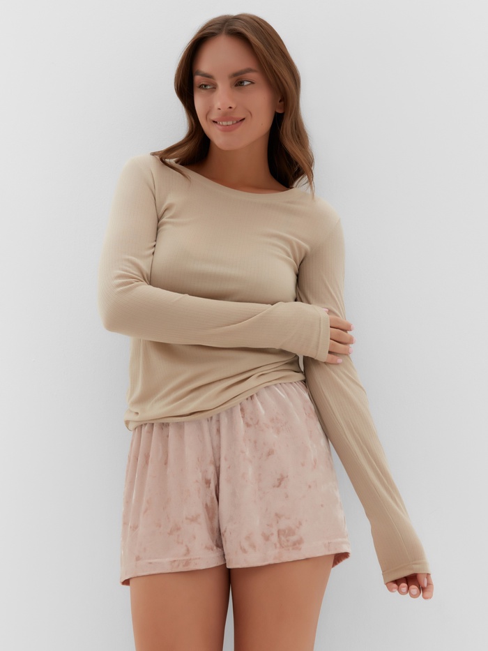 Пижама женская (лонгслив, шорты) KAFTAN «Бархат», размер 44-46, цвет розовый, бежевый — Характеристики