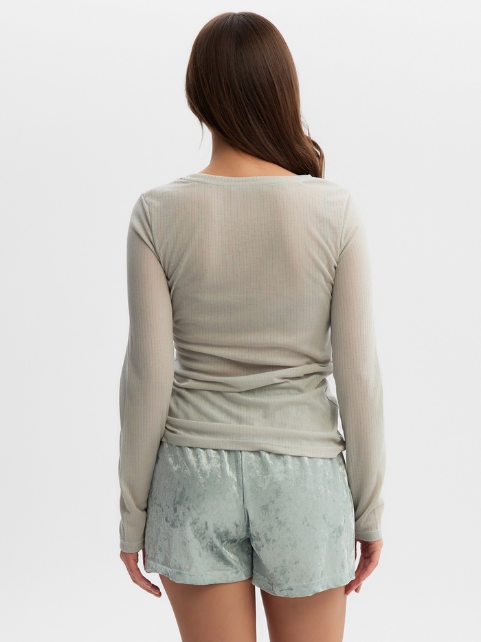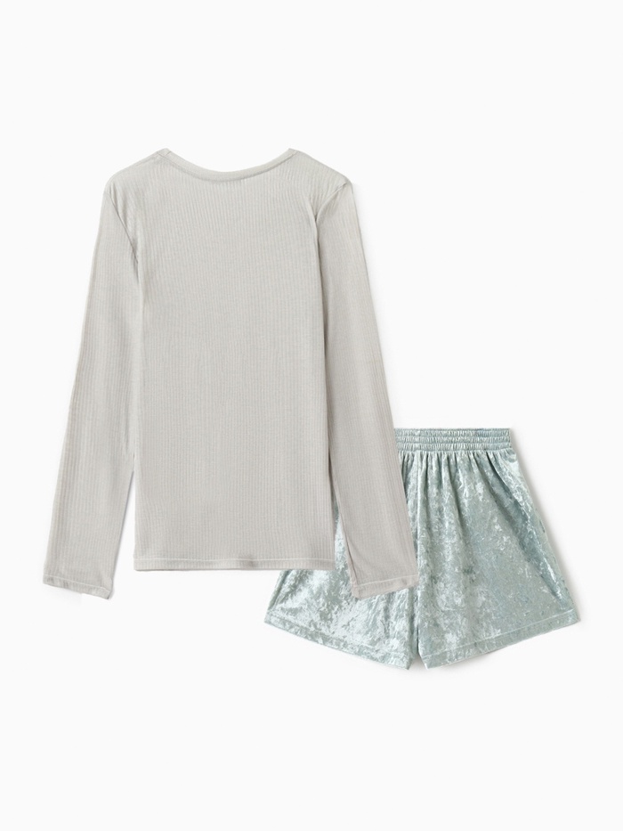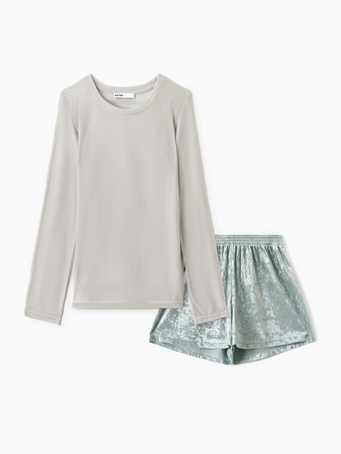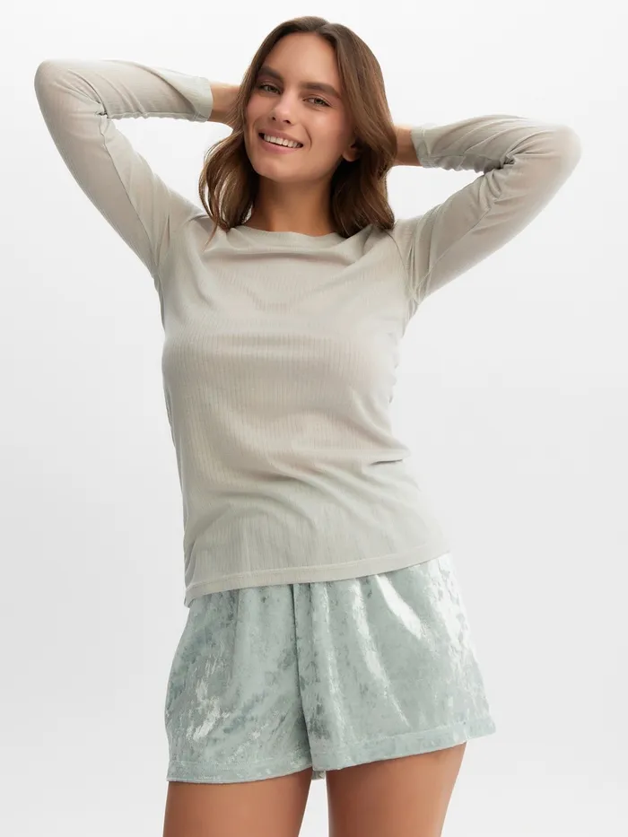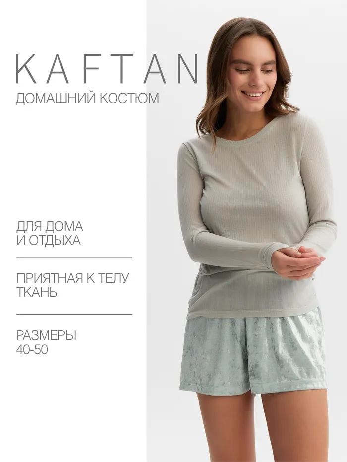 Пижама женская (лонгслив, шорты) KAFTAN «Бархат», размер 48-50, мятная — Характеристики