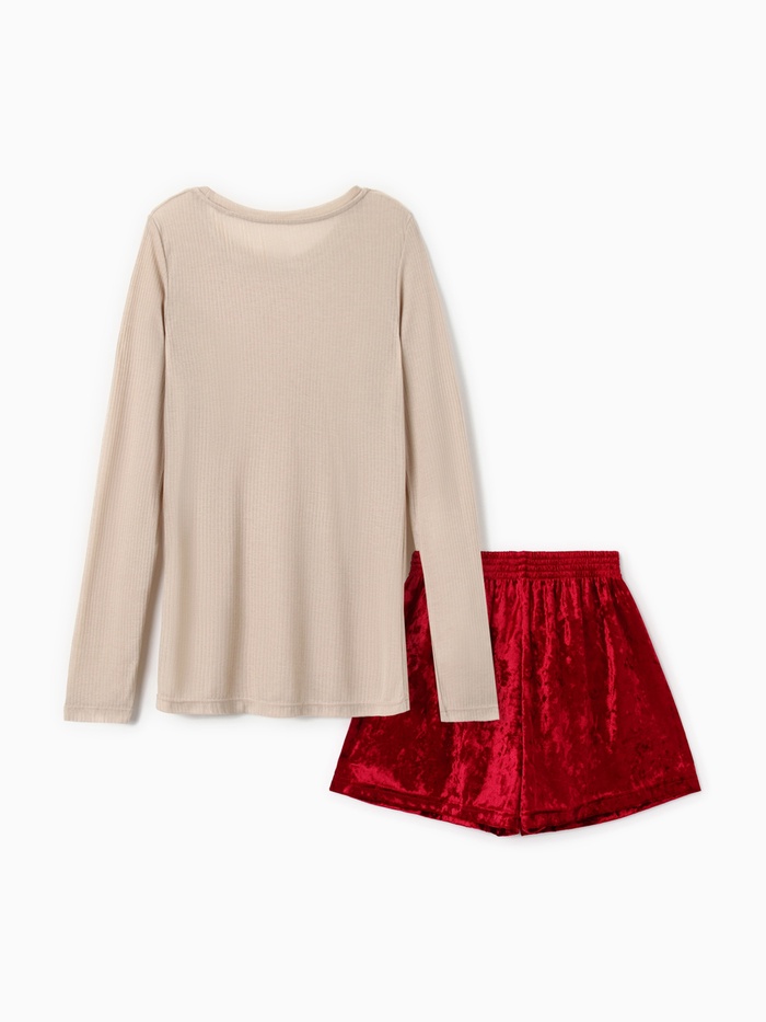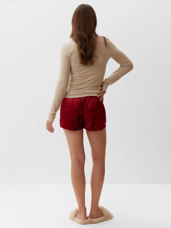 Пижама женская (лонгслив, шорты) KAFTAN «Бархат», размер 48-50, цвет бордовый, бежевый — Характеристики