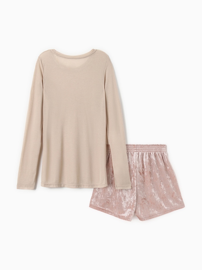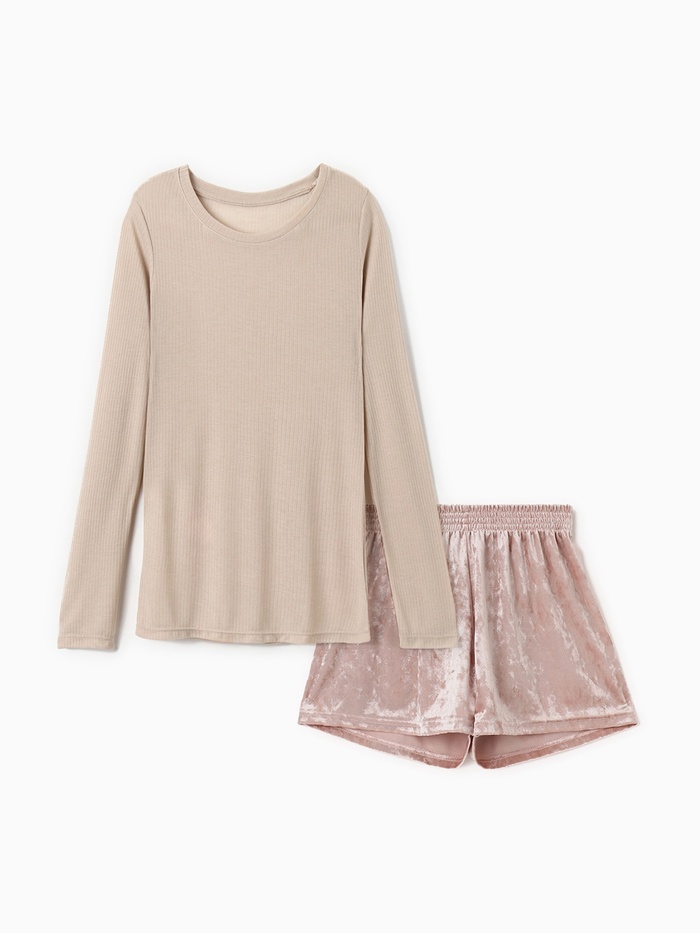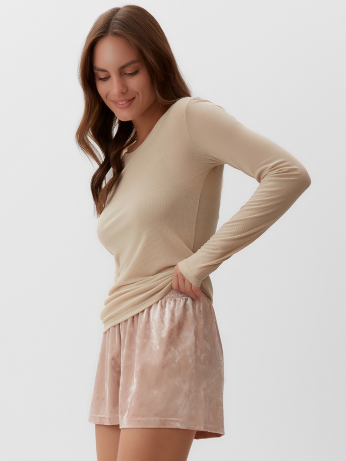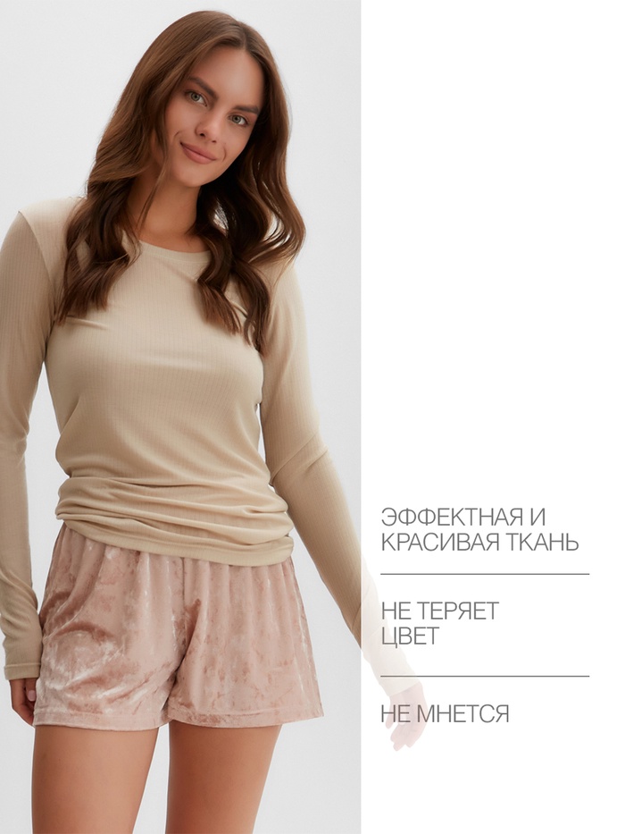 Пижама женская (лонгслив, шорты) KAFTAN «Бархат», размер 48-50, цвет розовый, бежевый — Характеристики
