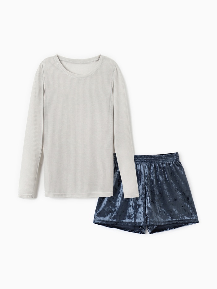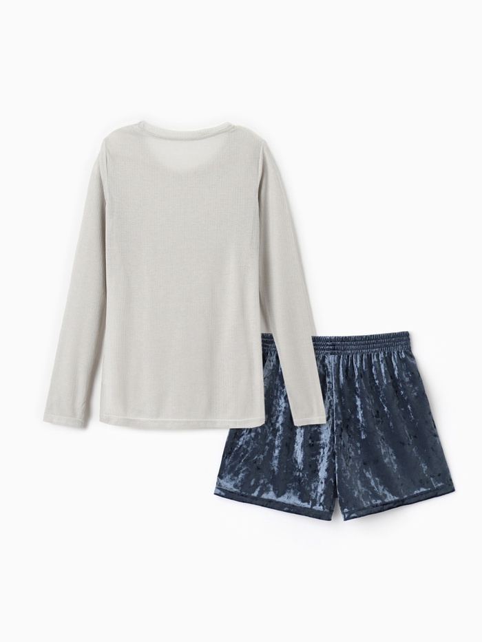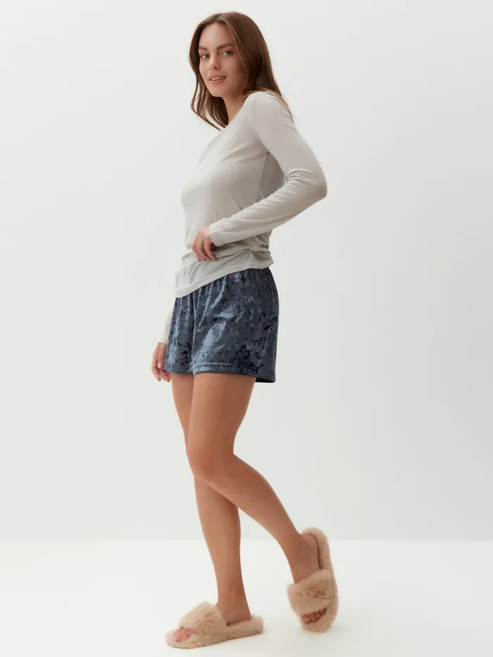 Пижама женская (лонгслив, шорты) KAFTAN «Бархат», размер 48-50, цвет серый, голубой — Характеристики