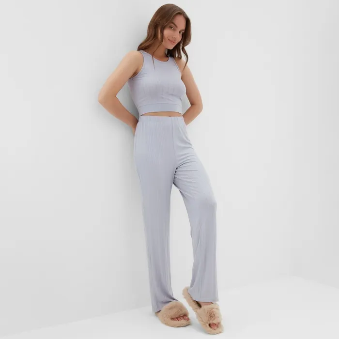 Пижама женская (майка, брюки) KAFTAN «Цветы», размер 44-46, голубая — Характеристики