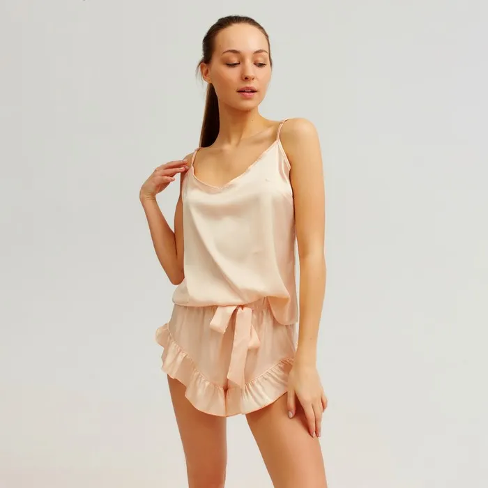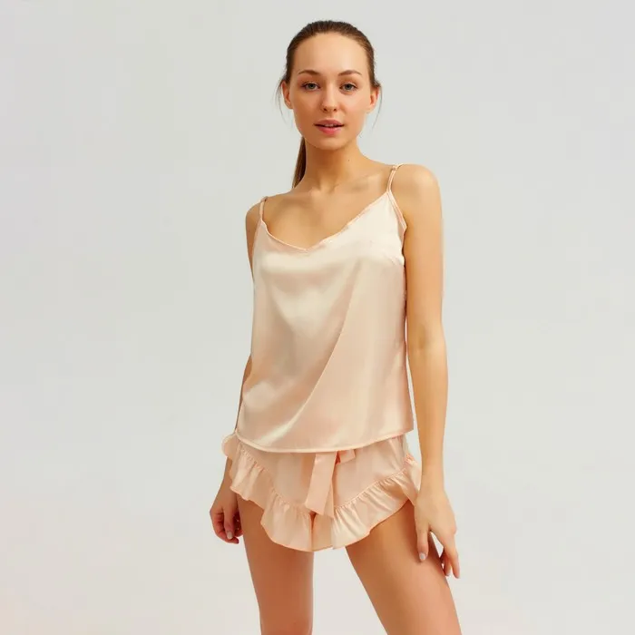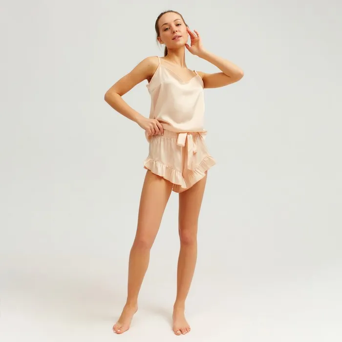 Пижама женская (майка, шорты) MINAKU: Light touch цвет бежевый, размер 42 — Характеристики