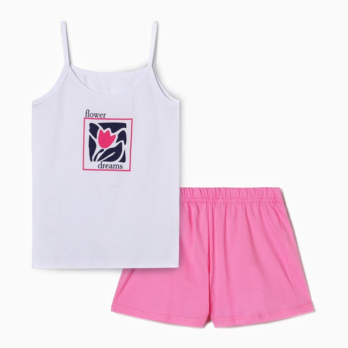 Пижама женская (майка, шорты), размер 48, цвет розовый, белый