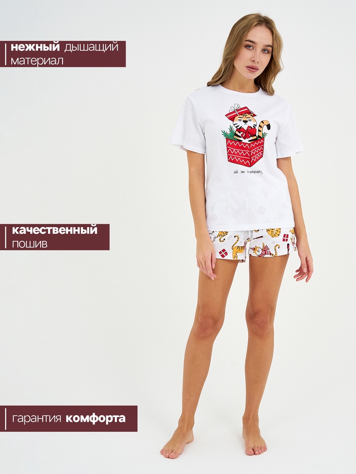 Пижама женская новогодняя (футболка и шорты) KAFTAN «Тигры» р.52-54 — Характеристики