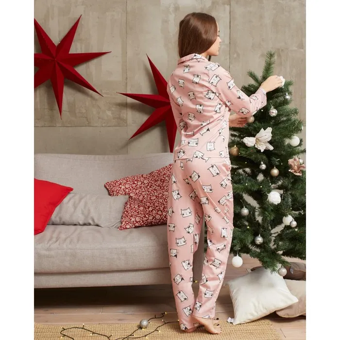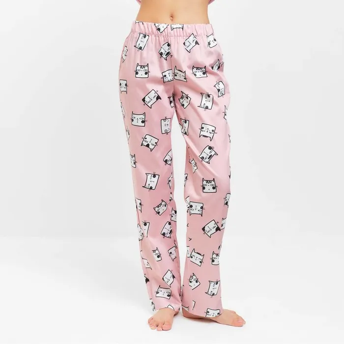 Пижама женская (рубашка, брюки) KAFTAN «Котики», размер 52-54, розовая — Характеристики