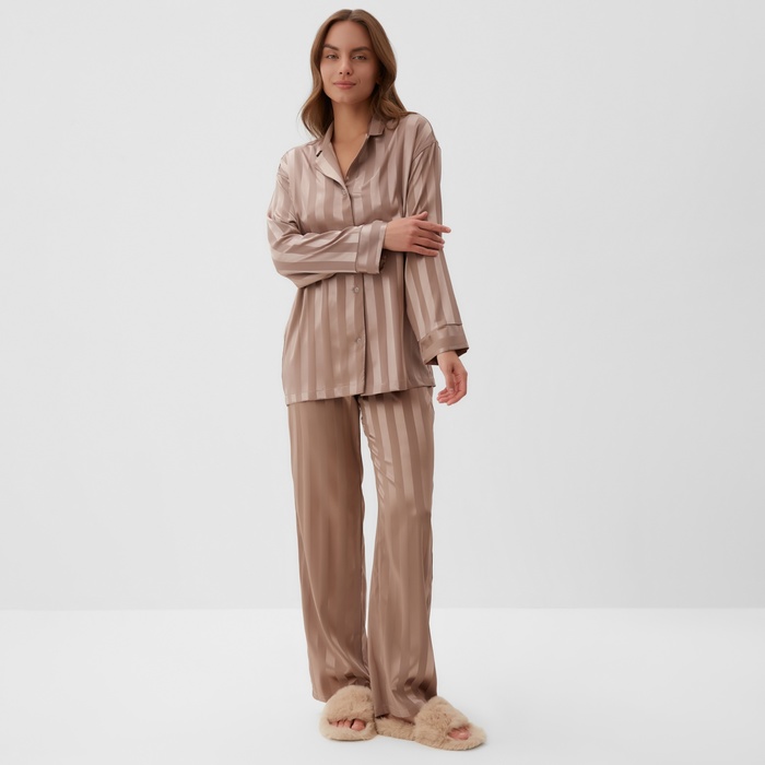 Пижама женская (рубашка, брюки) KAFTAN "Полоска", кофейный, р.44-46 — Характеристики