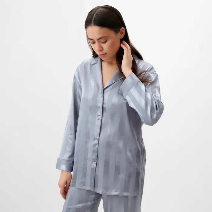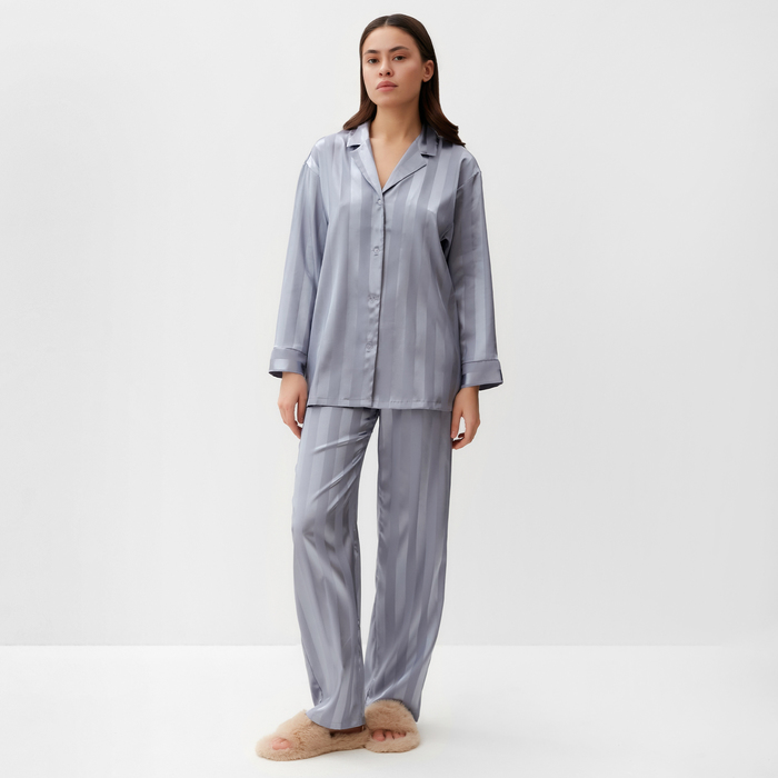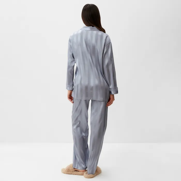 Пижама женская (рубашка, брюки) KAFTAN "Полоска", серо-голубой, размер 40-42 — Характеристики
