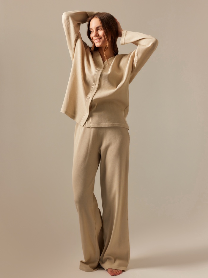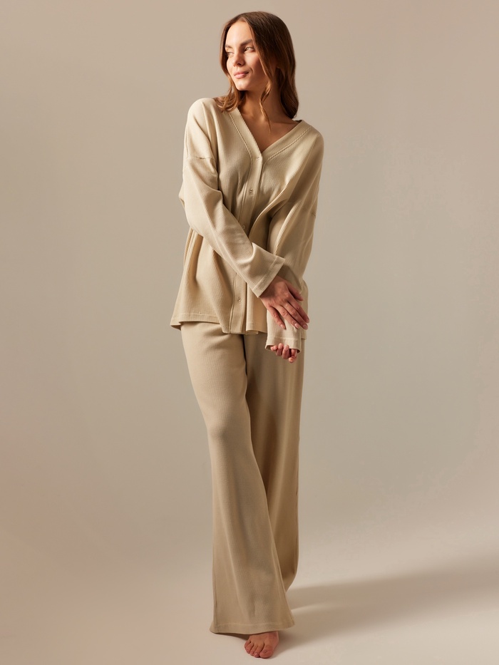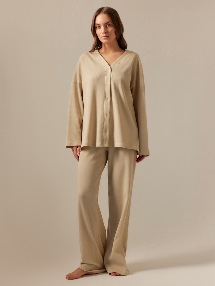 Пижама женская (рубашка, брюки) SL HOME, размер M, бежевая — Характеристики
