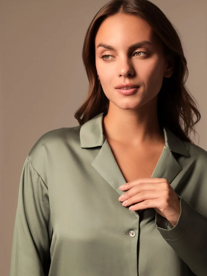 Пижама женская (рубашка, брюки) SL HOME Tensel Home, размер S, зелёная — Характеристики