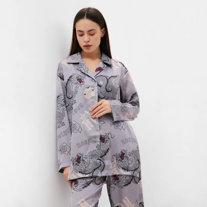 Пижама женская (рубашка и брюки) KAFTAN "Дракон", размер 52-54, серый — Характеристики