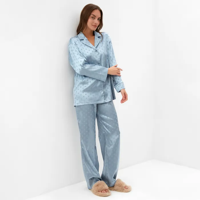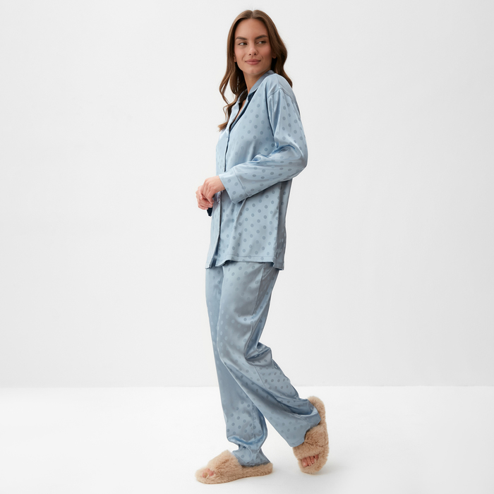 Пижама женская (рубашка и брюки) KAFTAN "Горох" цвет голубой, размер 44-46 — Характеристики