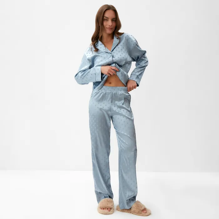 Пижама женская (рубашка и брюки) KAFTAN "Горох" цвет голубой, размер 52-54 — Характеристики