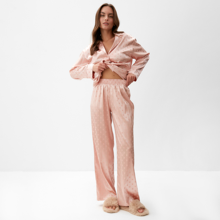 Пижама женская (рубашка и брюки) KAFTAN "Горох" цвет розовый, размер 40-42 — Характеристики