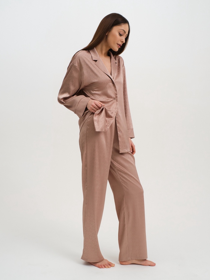 Пижама женская (рубашка и брюки) KAFTAN "Треугольники" цвет бежевый, размер 40-42 — Характеристики