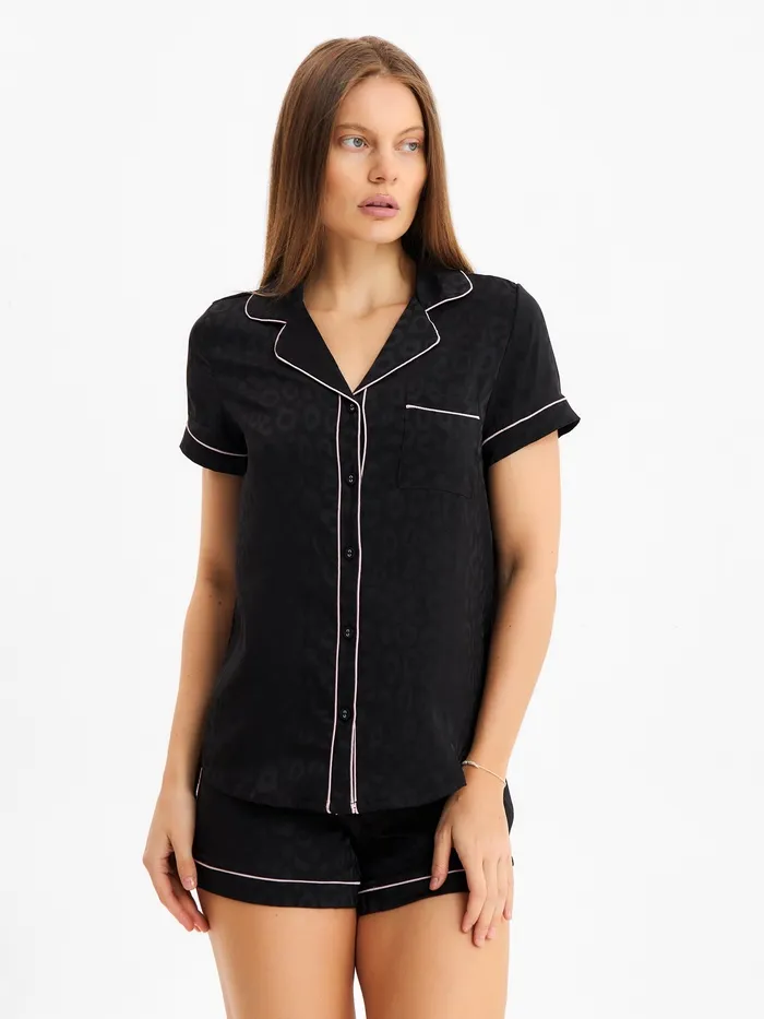 Пижама женская (рубашка и шорты) KAFTAN Leo black collection, размер 40-42, чёрная — Характеристики