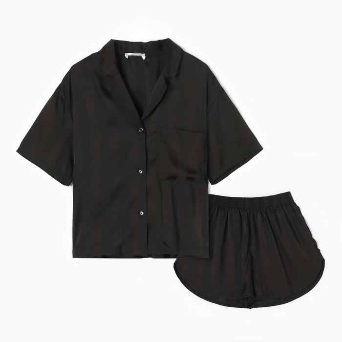 Пижама женская (рубашка и шорты) KAFTAN SILK "Полоска" р.44-46, черный — Характеристики