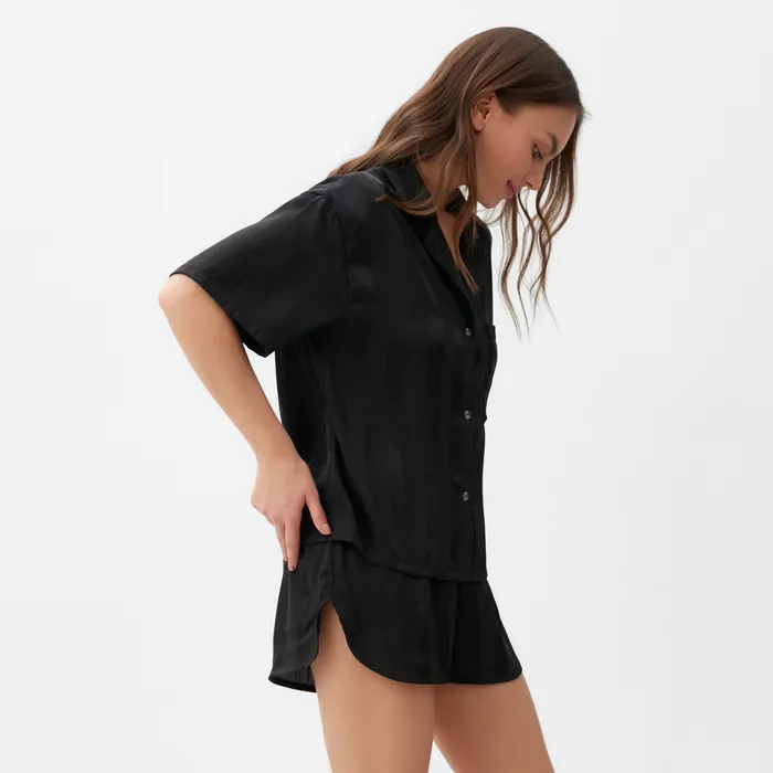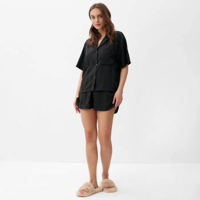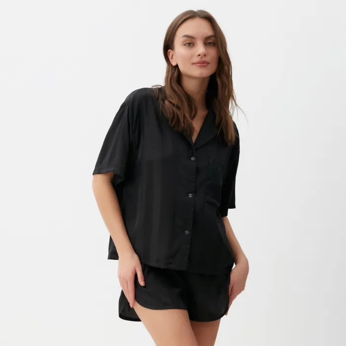 Пижама женская (рубашка и шорты) KAFTAN SILK "Полоска" р.44-46, черный — Характеристики