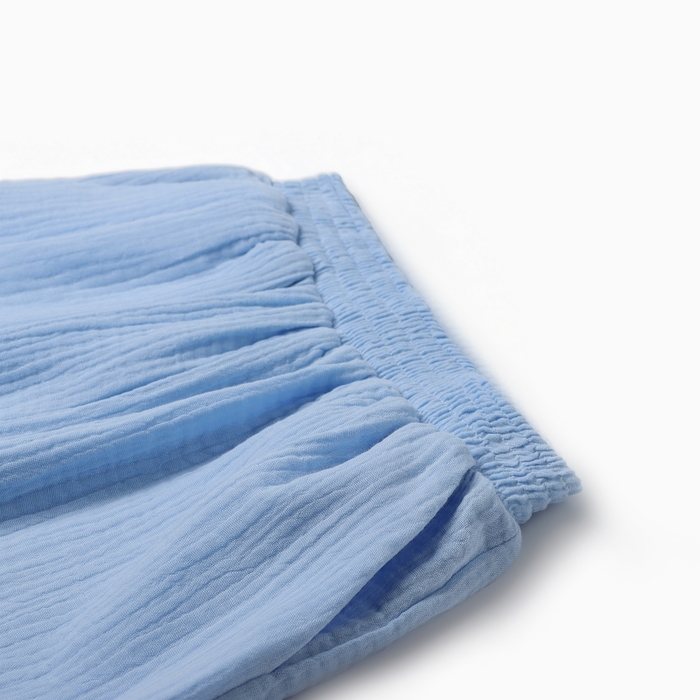 Стильная пижама с рубашкой и шортами создана для женщин, которые любят чувствовать себя комфортно в любое время года. Комплект изготовлен из высококачественного муслина, известного своей мягкостью и высокой износостойкостью. Голубой цвет добавляет свежести и лёгкости вашему образу, а свободный крой обеспечит свободу движений.