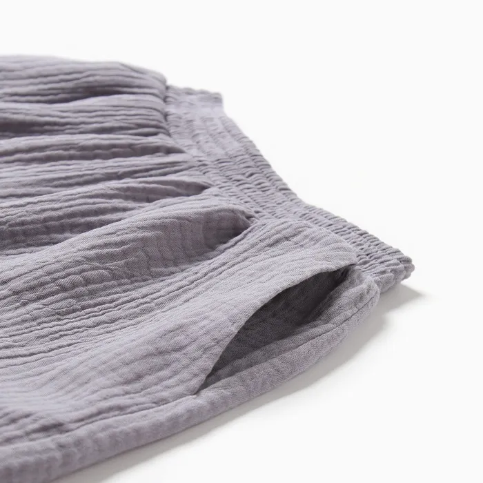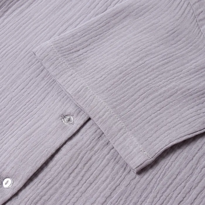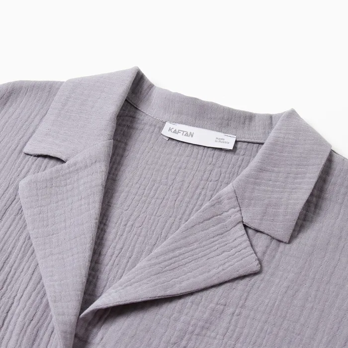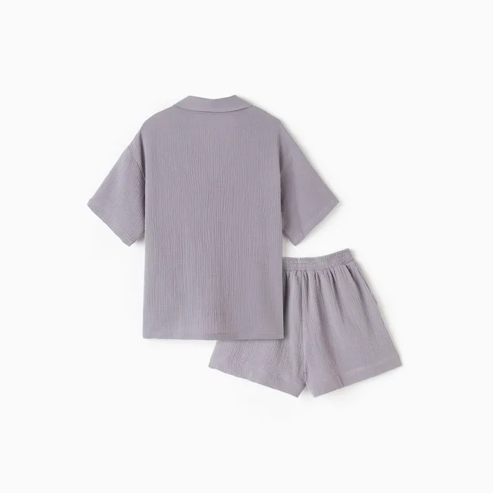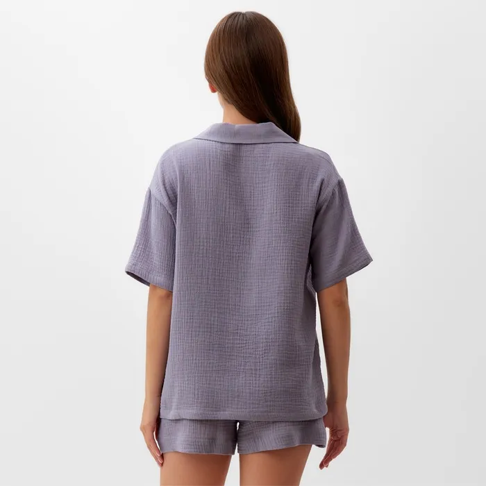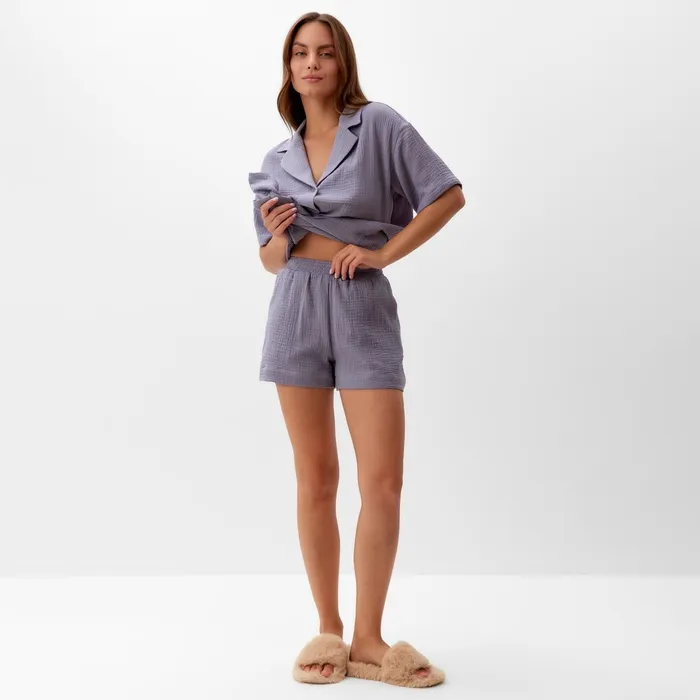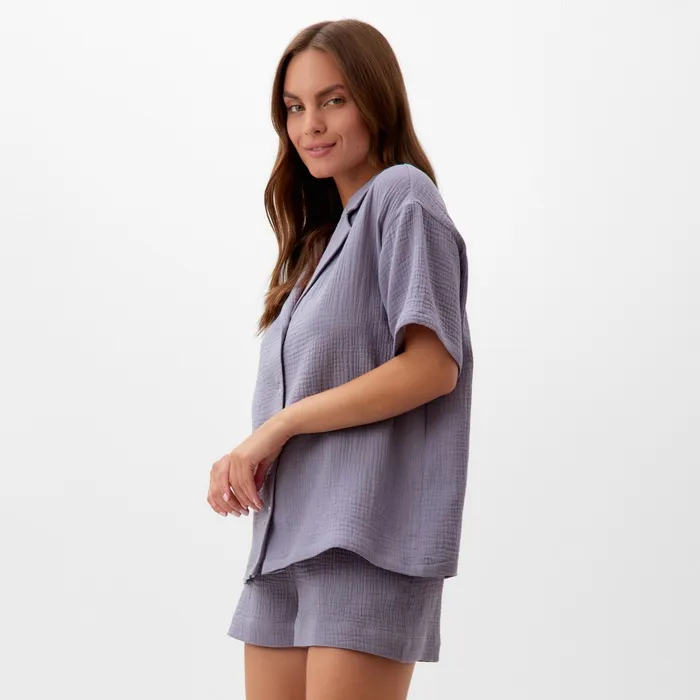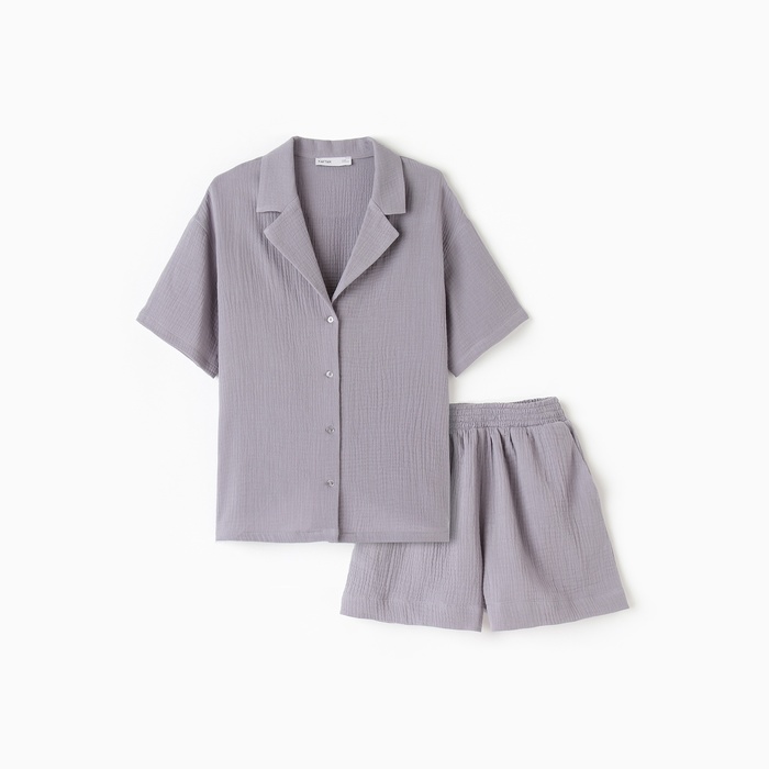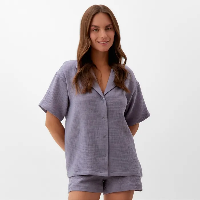 Женская пижама с рубашкой и шортами в сером цвете станет идеальным выбором для тех, кто ценит комфорт и стиль. Костюм сделан из мягкого муслина и выполнен в свободном крое, это обеспечит вам удобство в использовании.