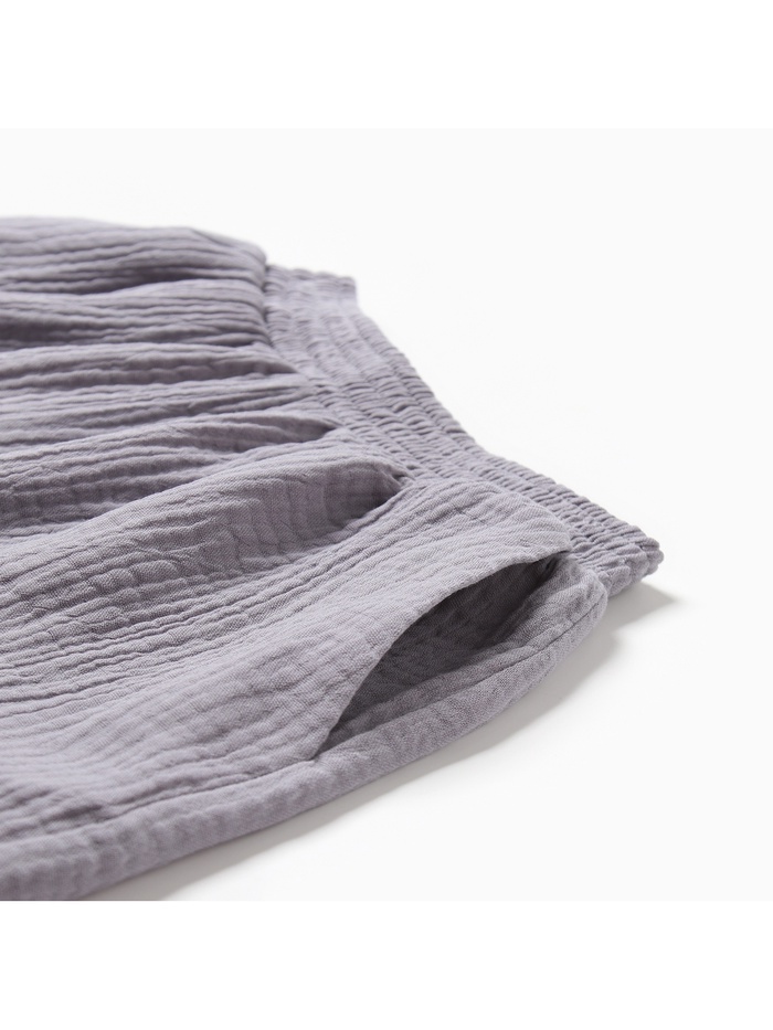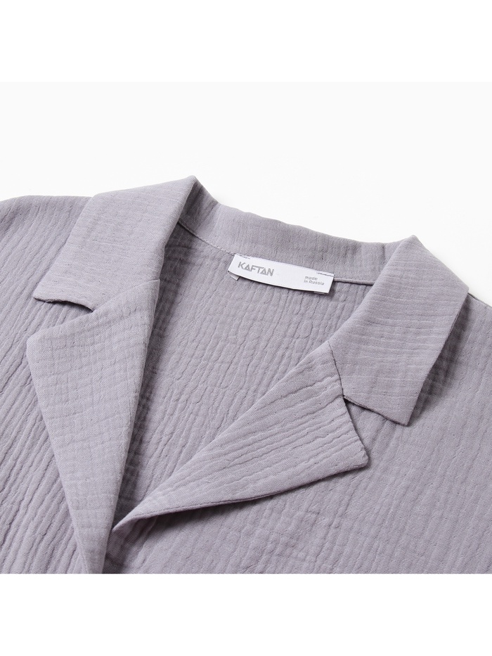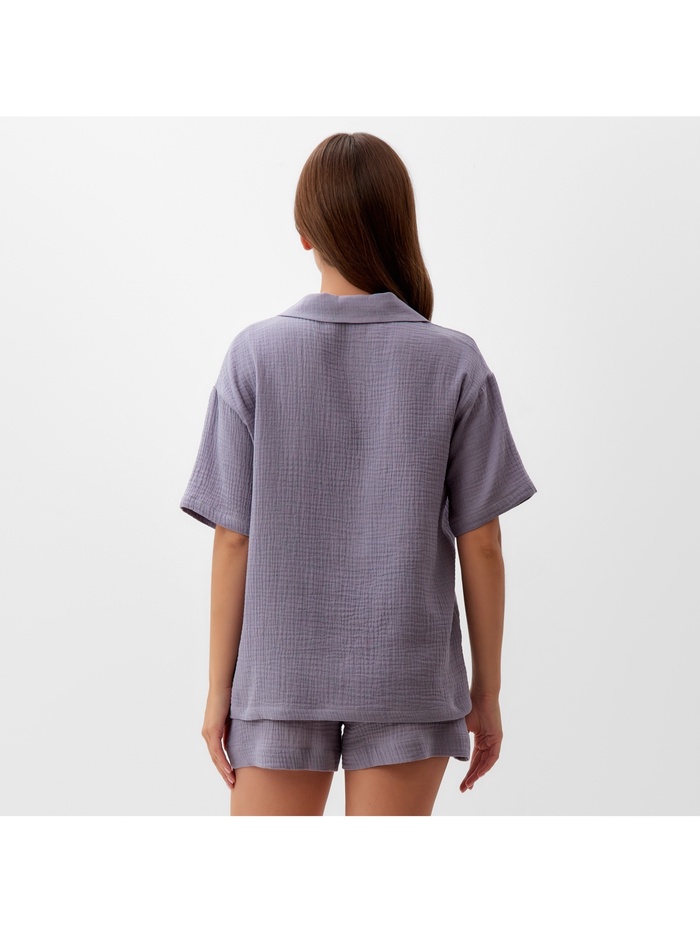 Женская пижама с рубашкой и шортами в сером цвете станет идеальным выбором для тех, кто ценит комфорт и стиль. Костюм сделан из мягкого муслина и выполнен в свободном крое, это обеспечит вам удобство в использовании.