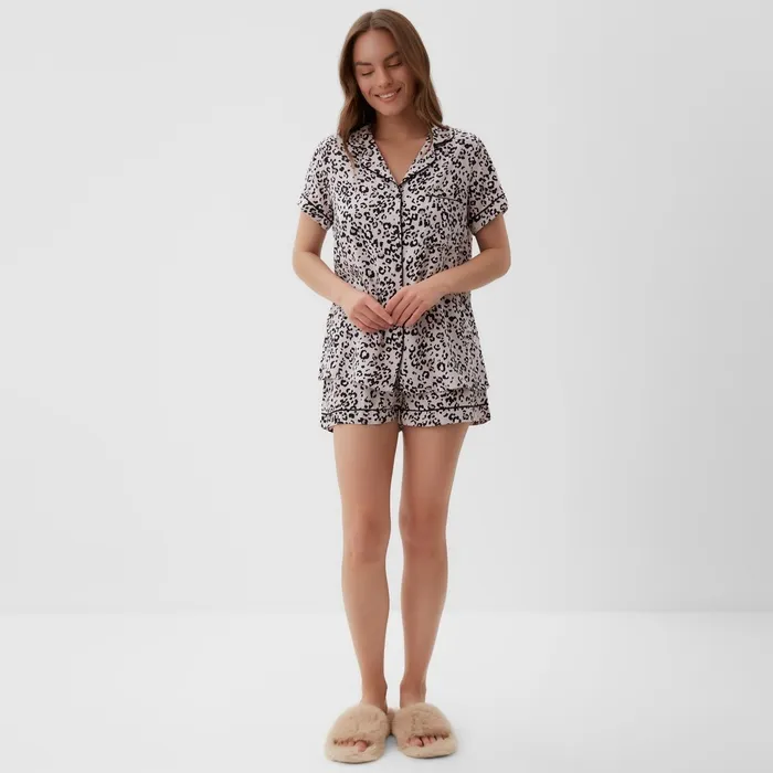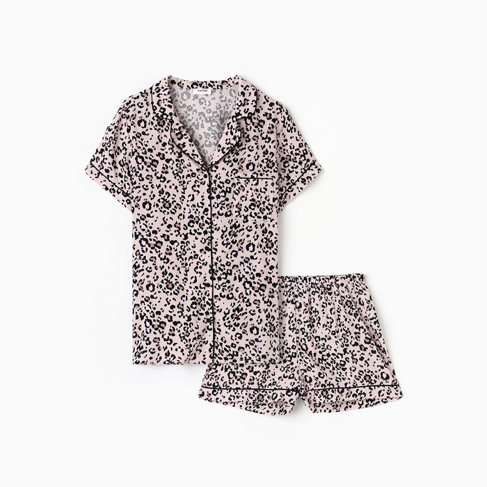 Пижама женская (рубашка, шорты) KAFTAN Leo, размер 52-54, розовая — Характеристики
