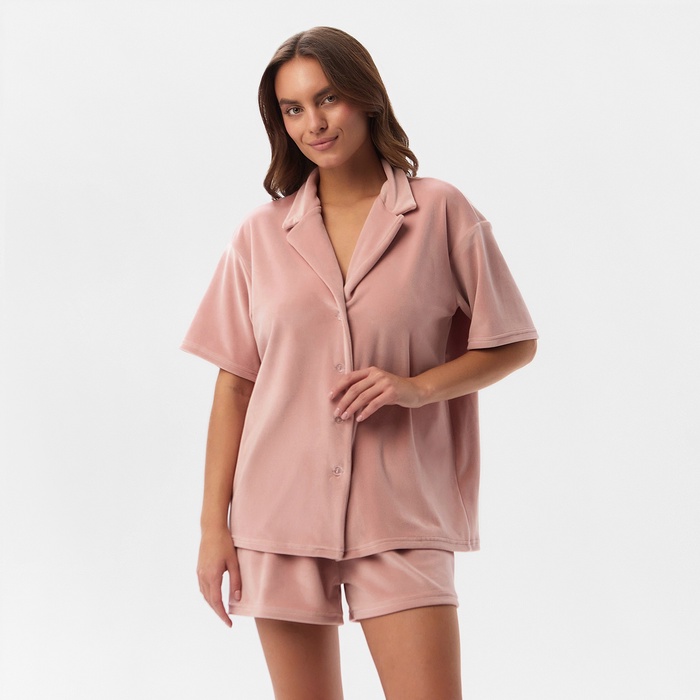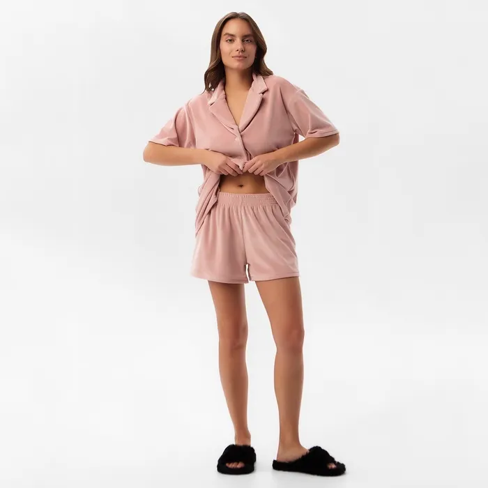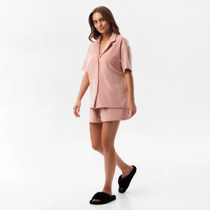 Пижама женская (рубашка, шорты) KAFTAN Plushy, размер 48-50, розовая — Характеристики