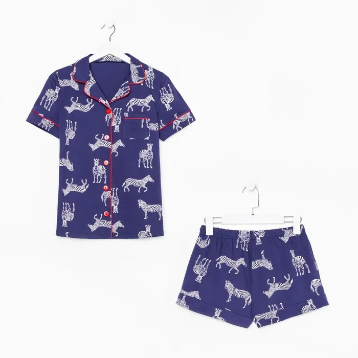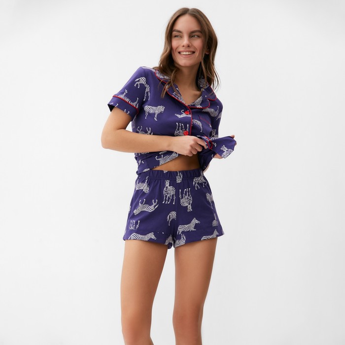 Пижама женская (рубашка, шорты) KAFTAN Zebra, размер 48-50, синяя — Характеристики