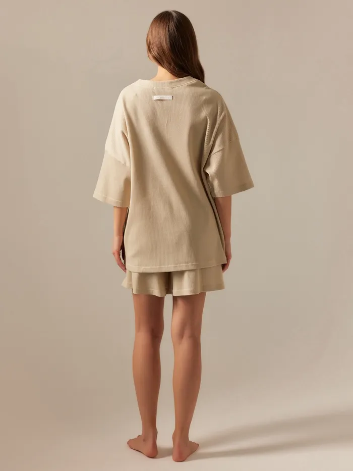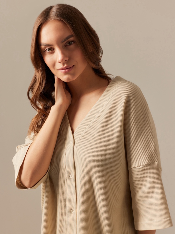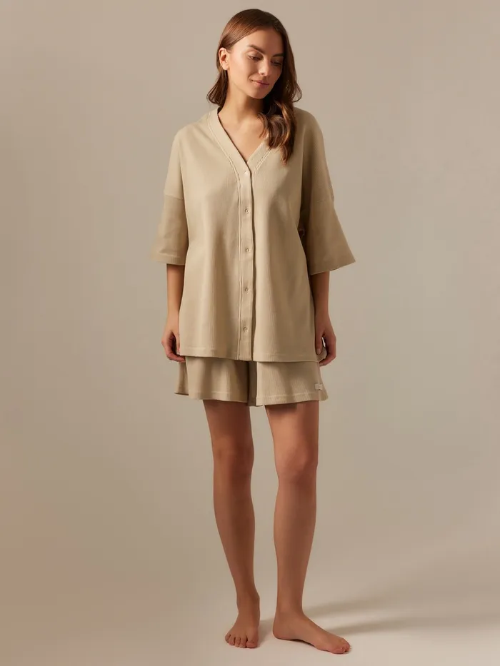 Пижама женская (рубашка, шорты) SL HOME, размер M, бежевая — Характеристики