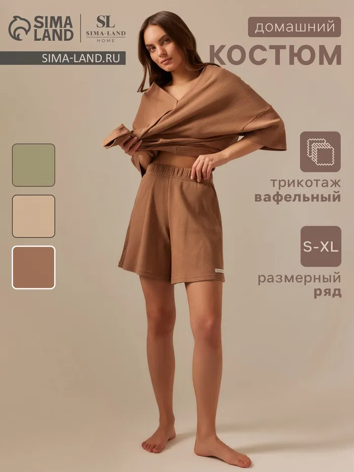 Пижама женская (рубашка, шорты) SL HOME, размер S, кофейная — Характеристики
