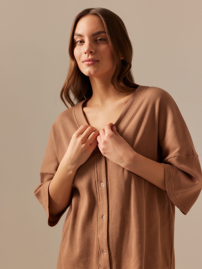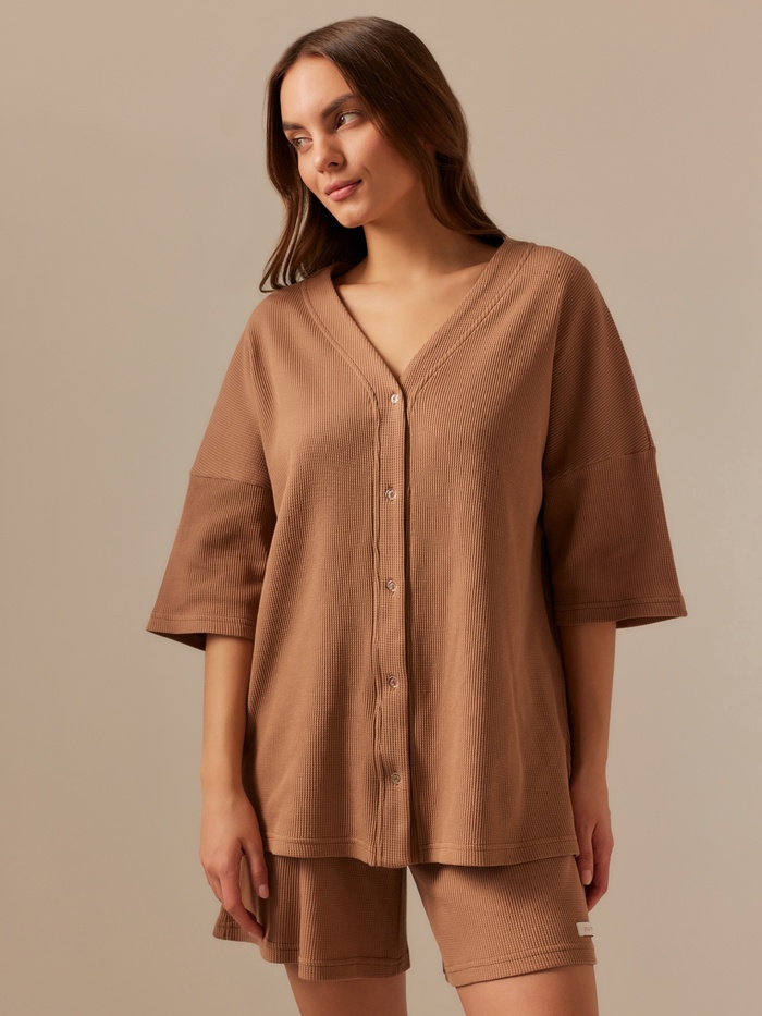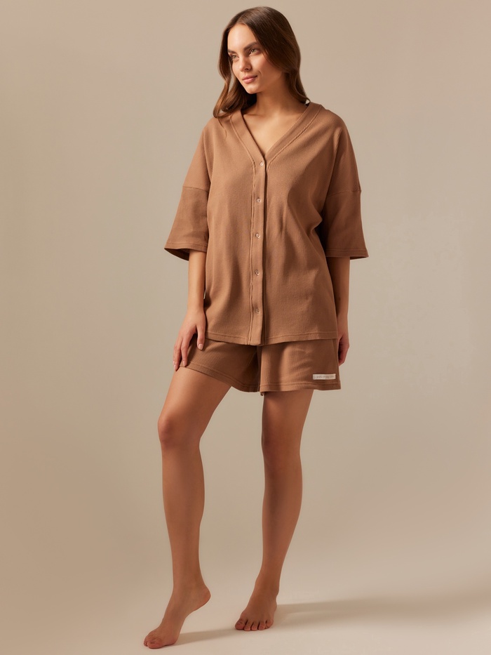 Пижама женская (рубашка, шорты) SL HOME, размер XL, кофейная — Характеристики