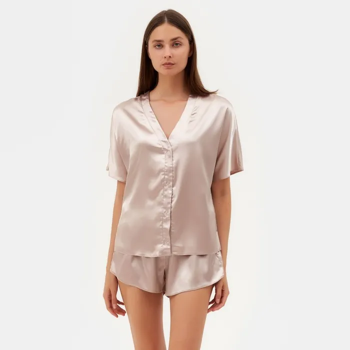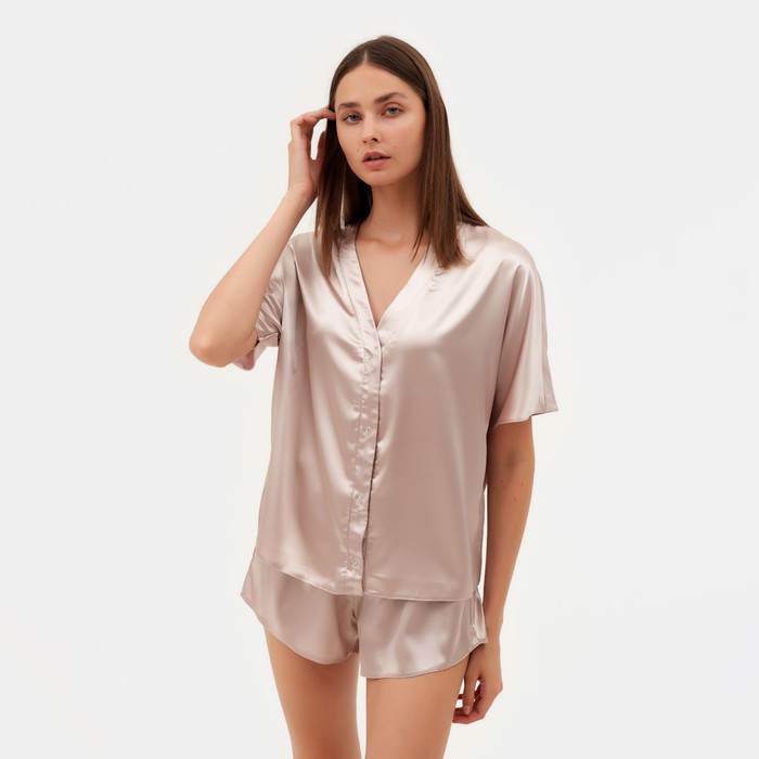Пижама женская (рубашка, шорты) женская MINAKU: Light touch, бежевая, размер 46 — Характеристики